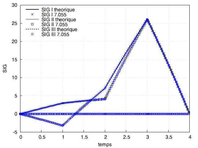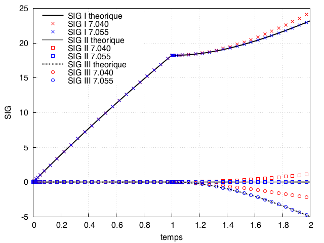 à noter que la version 7.040 ne converge pas jusqu'au bout. Par contre, si j'inverse le signe dans ECHELLE des déplacements imposés X et Y, les 2 versions convergent et donnent le résultat théorique.