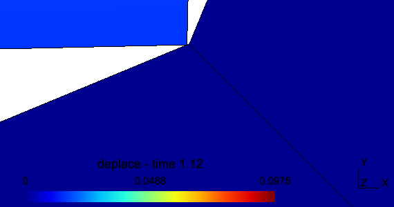 Au contraire si "a" est tel que px est supposé acceptable pour garder l'élément en contact, alors, le noeud reste en contact sur les deux faces. J'ai fait le test avec 1.e-4 et là le résultat est ok jusqu'à la fin.