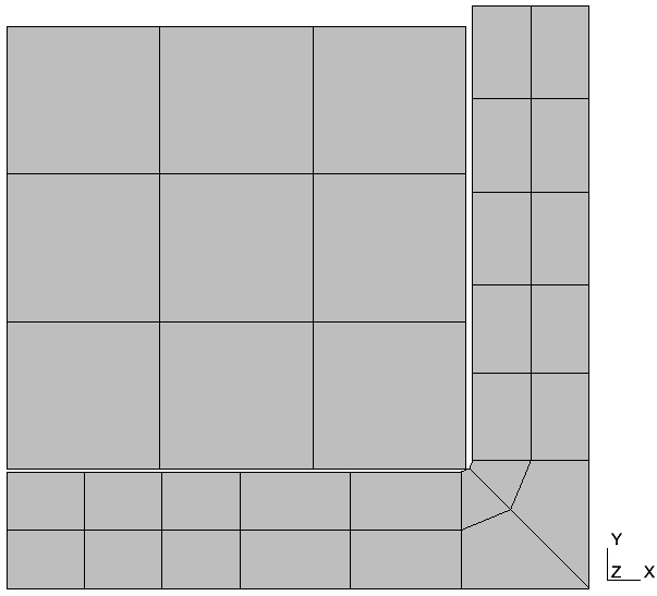 1) tout d'abord je considère le cas (plutôt physique) où la surface horizontale est un piston donc s'arrête contre la surface verticale, qui elle représente un cylindre donc déborde de part et d'autre la pièce déformable. Je m'intéresse uniquement au noeud en coin inf gauche.